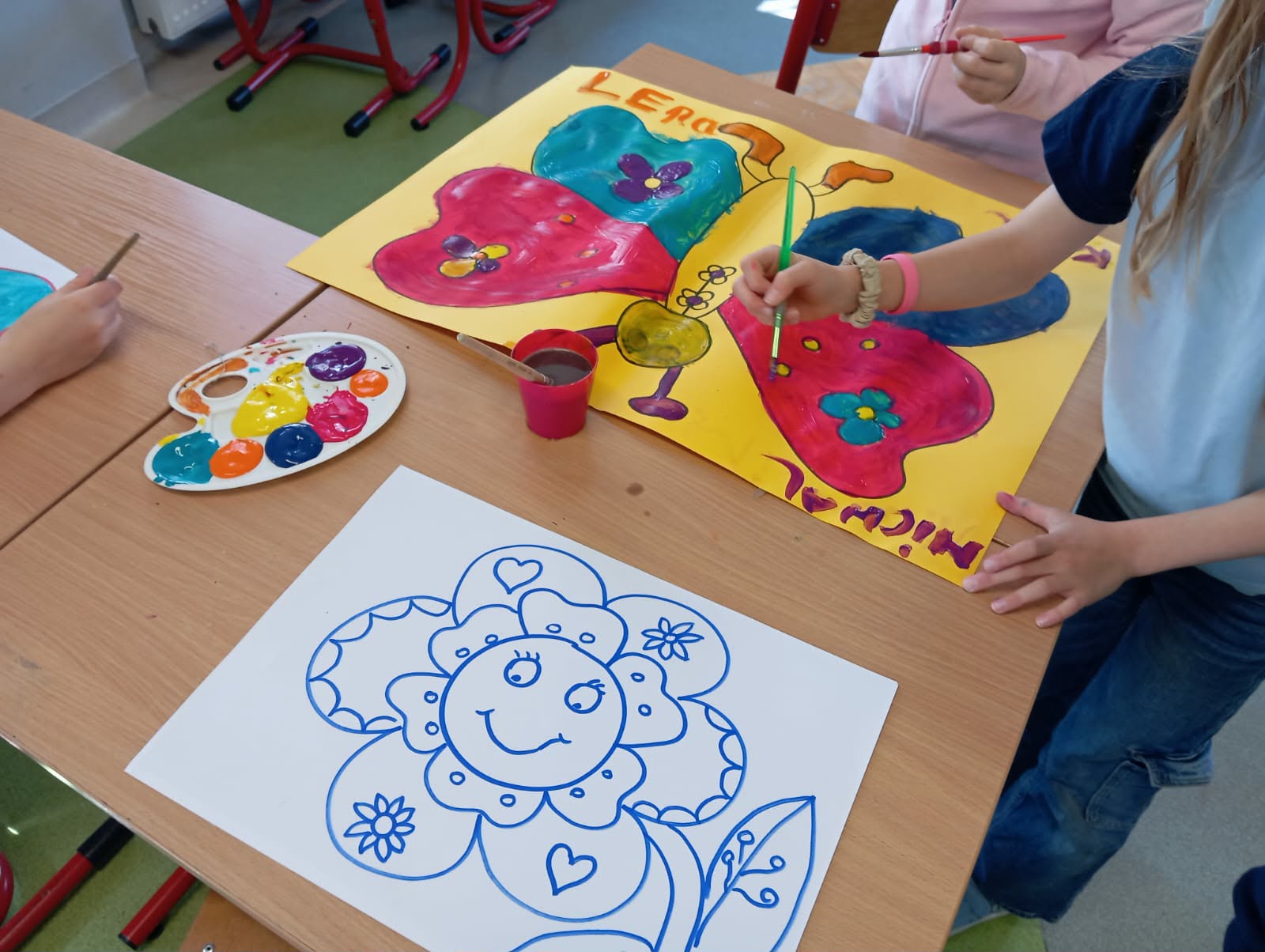Marzec to czas tworzenia wiosennych dekoracji do świetlicy. Wychowawcy wraz z uczniami wykazali się dużą kreatywnością w tym zakresie. Efektem ich pracy są: tulipany, żonkile, przebiśniegi, krokusy, hiacynty, motylkowe girlandy, pszczoły, bociany, biedronki – z wykorzystaniem różnych form, tekstur, materiałów.