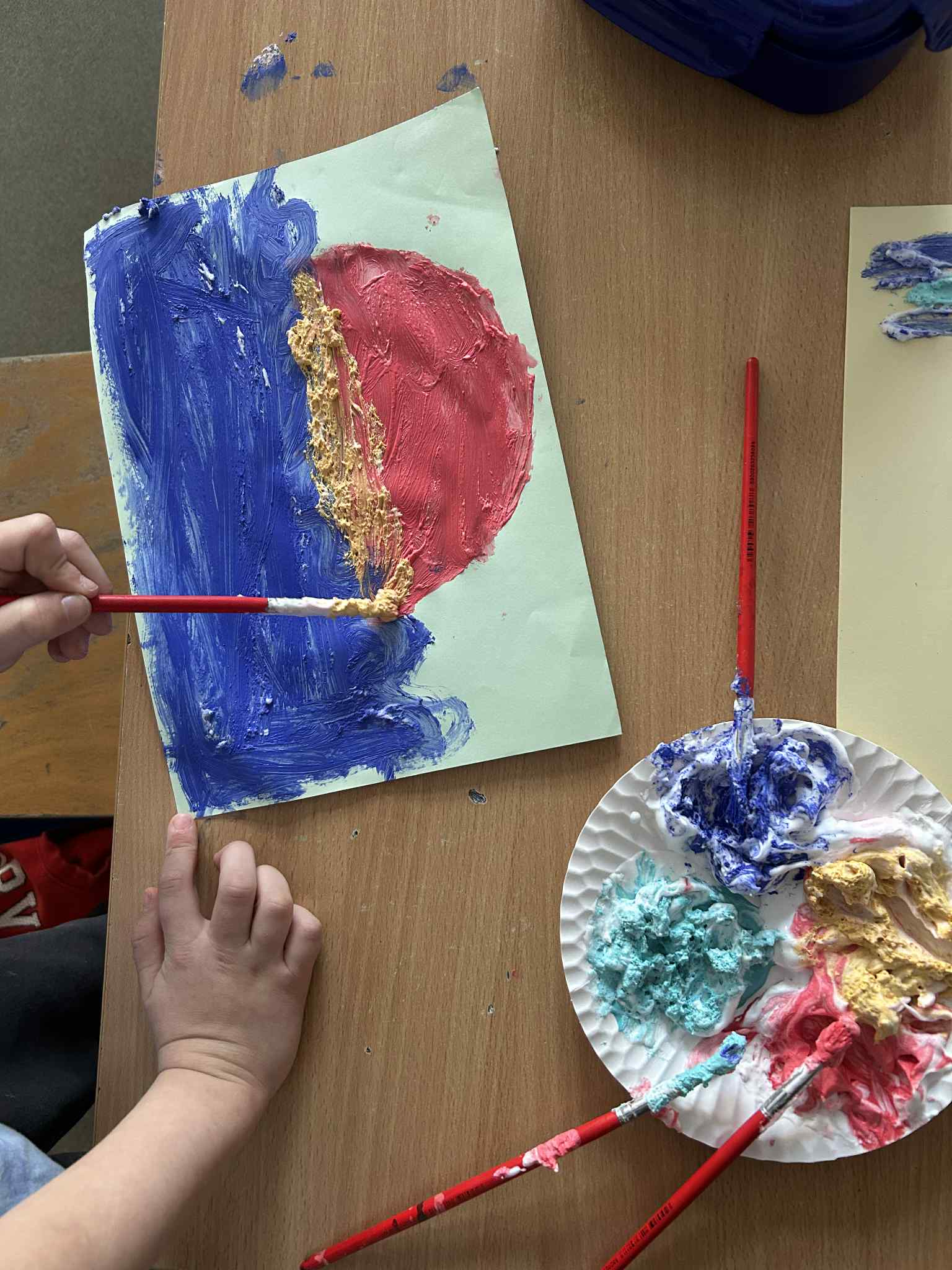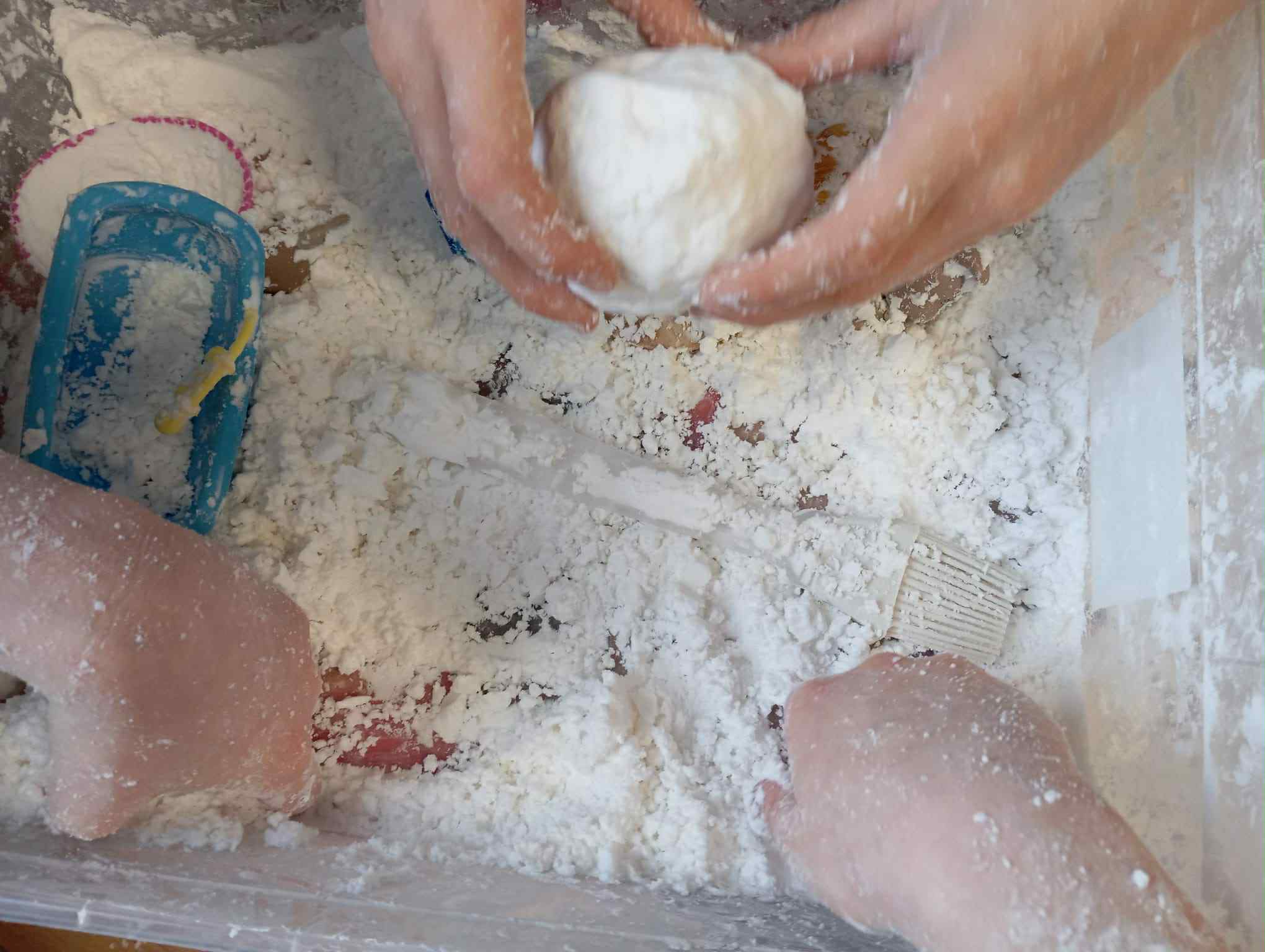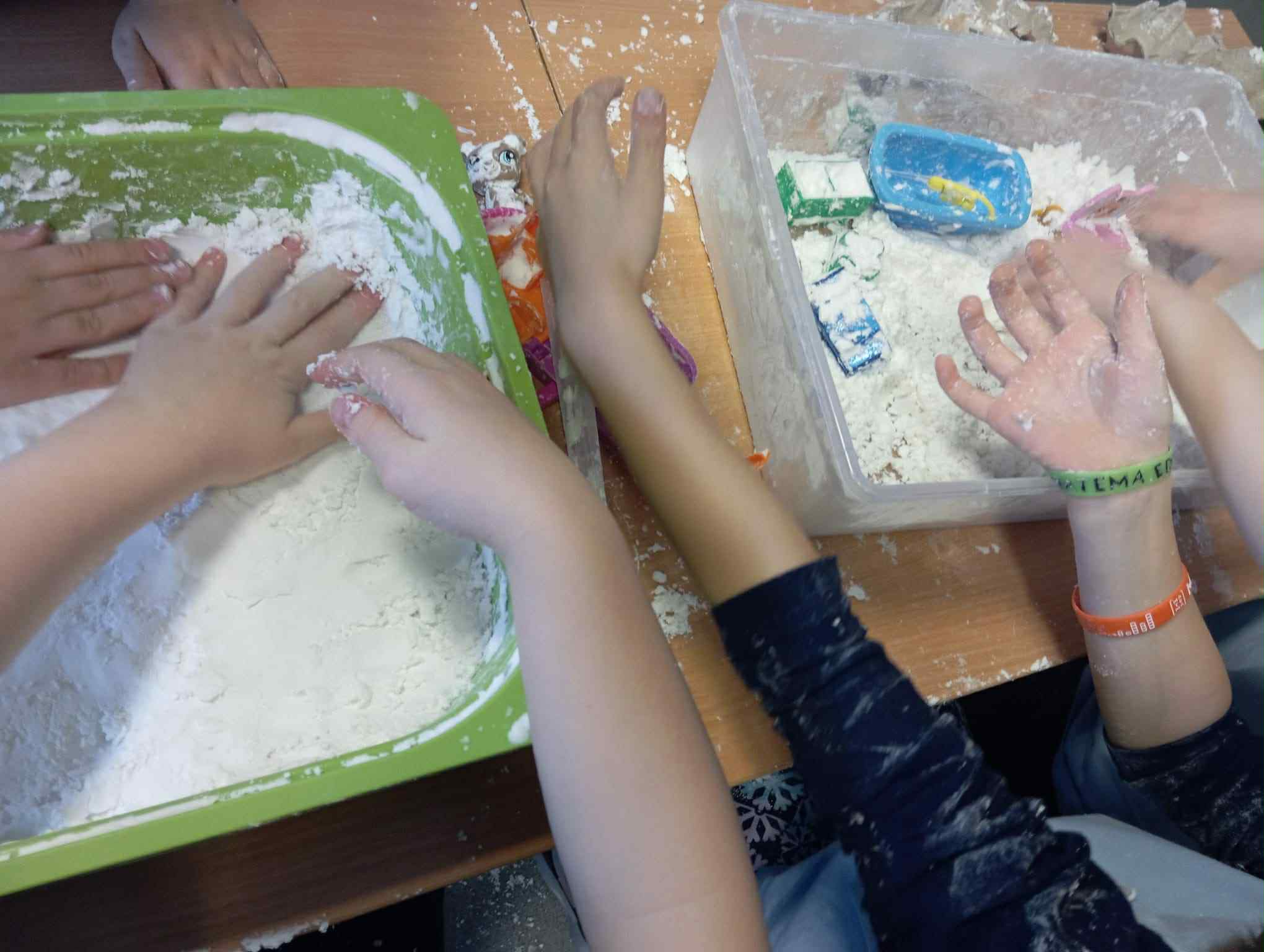 Zwróciliśmy również uwagę na zmysły, tak potrzebne w odbiorze świata. Dzieci podczas zajęć w świetlicy malowały farbami za pomocą dłoni, lepiły z ciastoliny, bawiły się sztucznym, pachnącym śniegiem, wyplatały warkocze ze sznurka i miękkiej wełny. Zabawy sensoryczne dostarczały uczniom dużo radości i śmiechu.