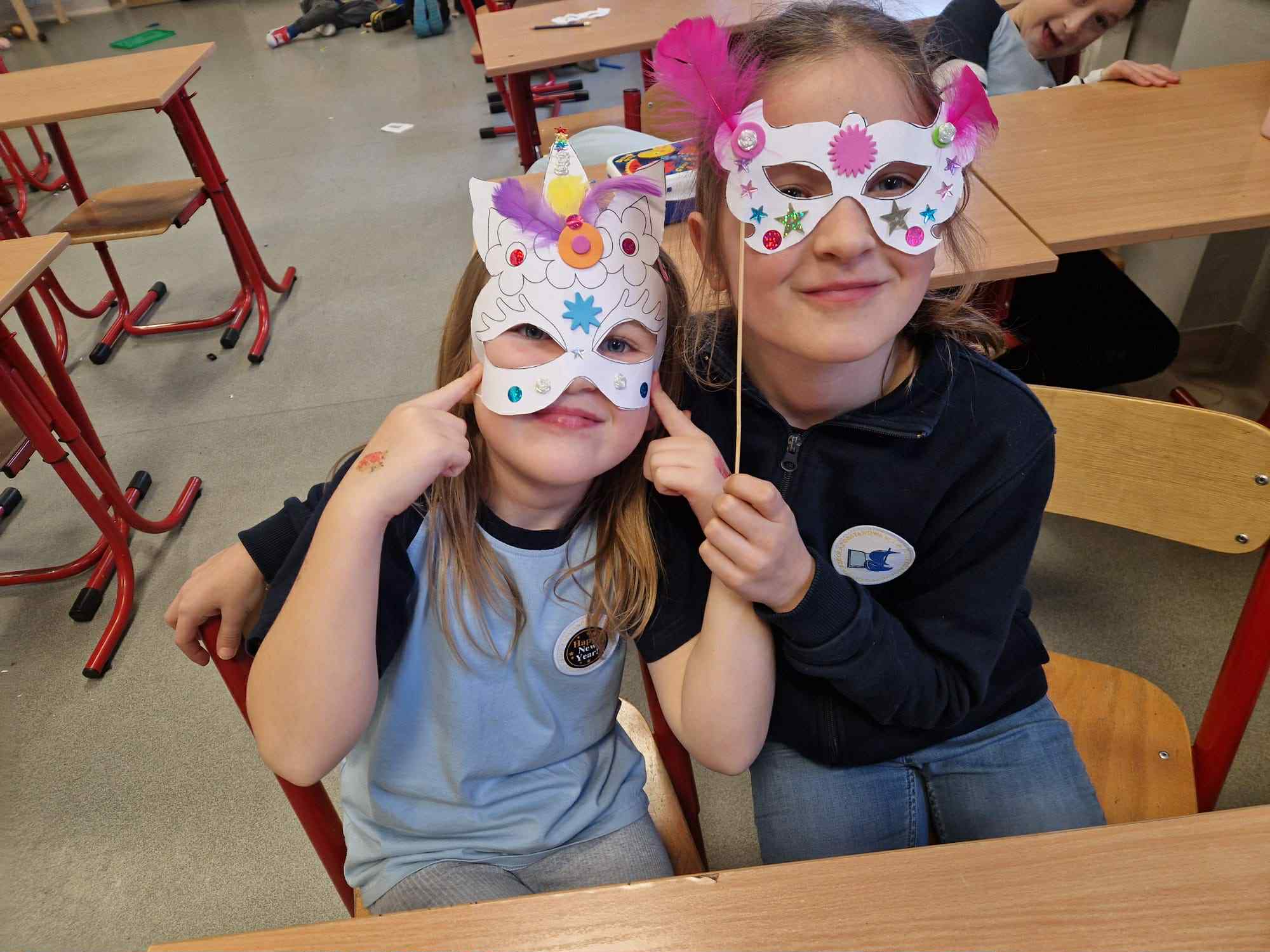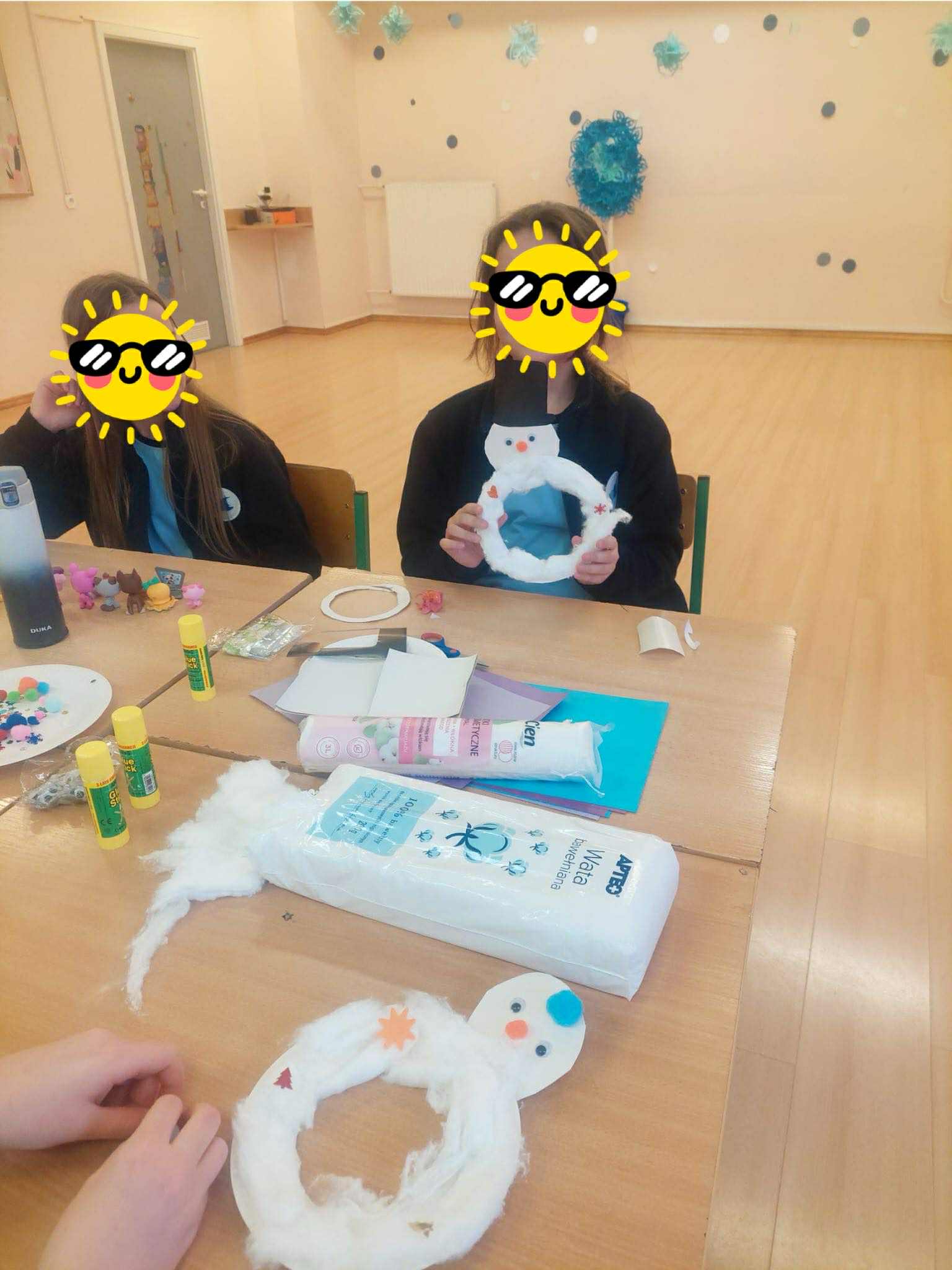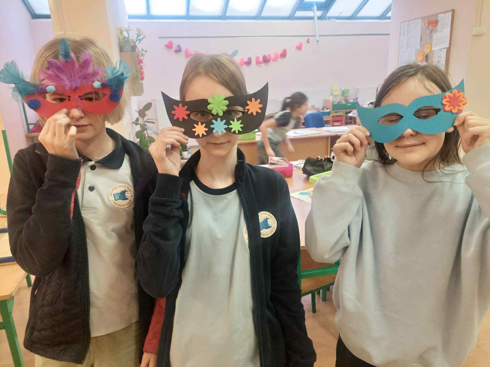 Nasi uczniowie w salach tworzyli prace plastyczne (maski karnawałowe, bałwanki z talerzyków, plakaty pingwinków...), bardzo chętnie tańczyli przy muzyce, ale także wyciszali się słuchając muzyki relaksacyjnej.