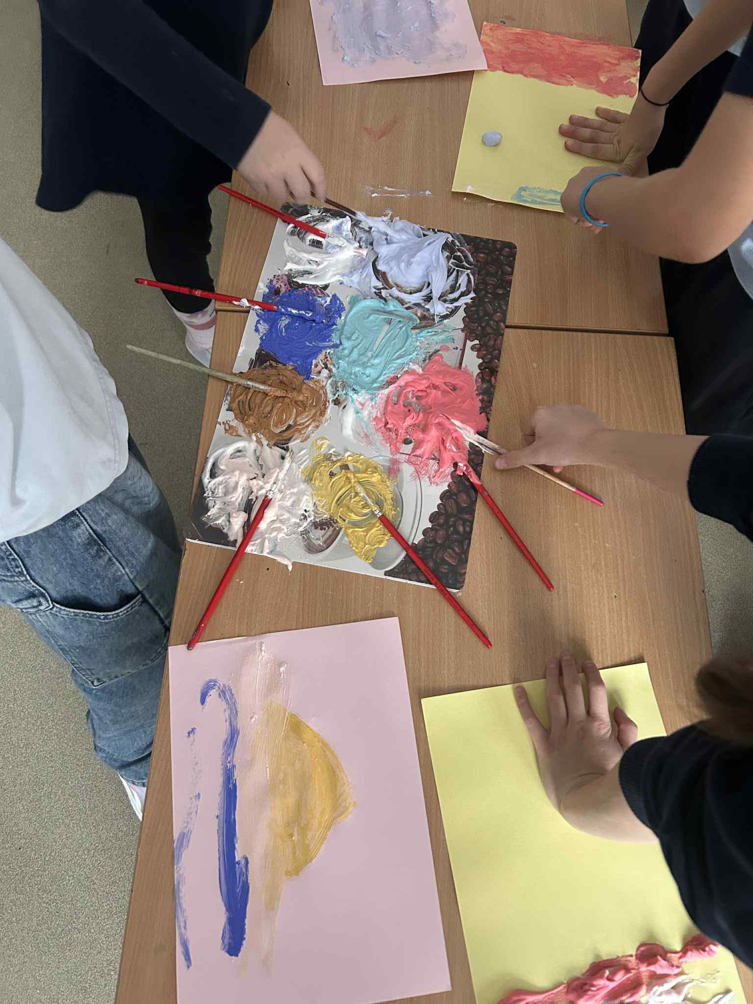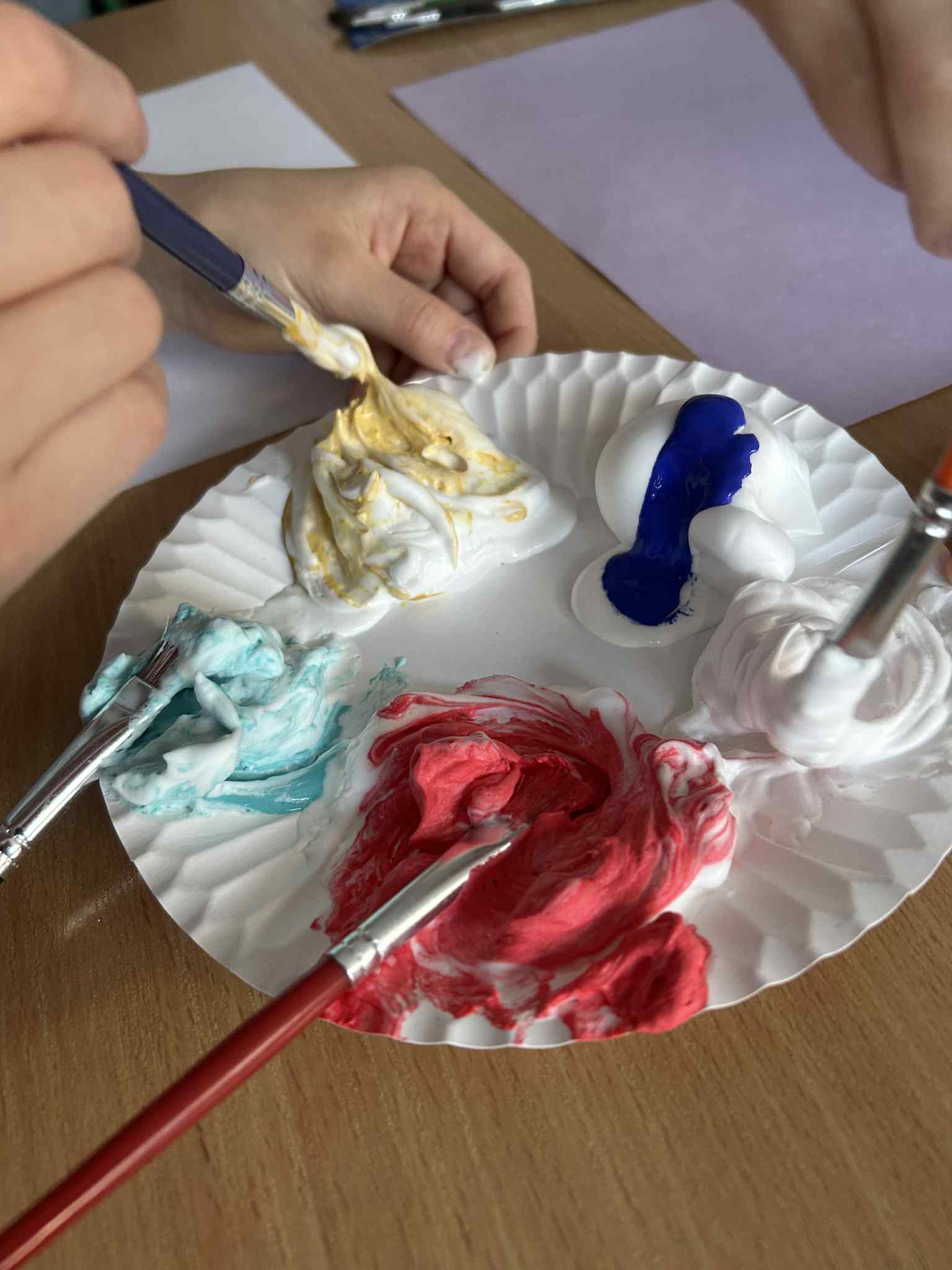 Zwróciliśmy również uwagę na zmysły, tak potrzebne w odbiorze świata. Dzieci podczas zajęć w świetlicy malowały farbami za pomocą dłoni, lepiły z ciastoliny, bawiły się sztucznym, pachnącym śniegiem, wyplatały warkocze ze sznurka i miękkiej wełny. Zabawy sensoryczne dostarczały uczniom dużo radości i śmiechu.