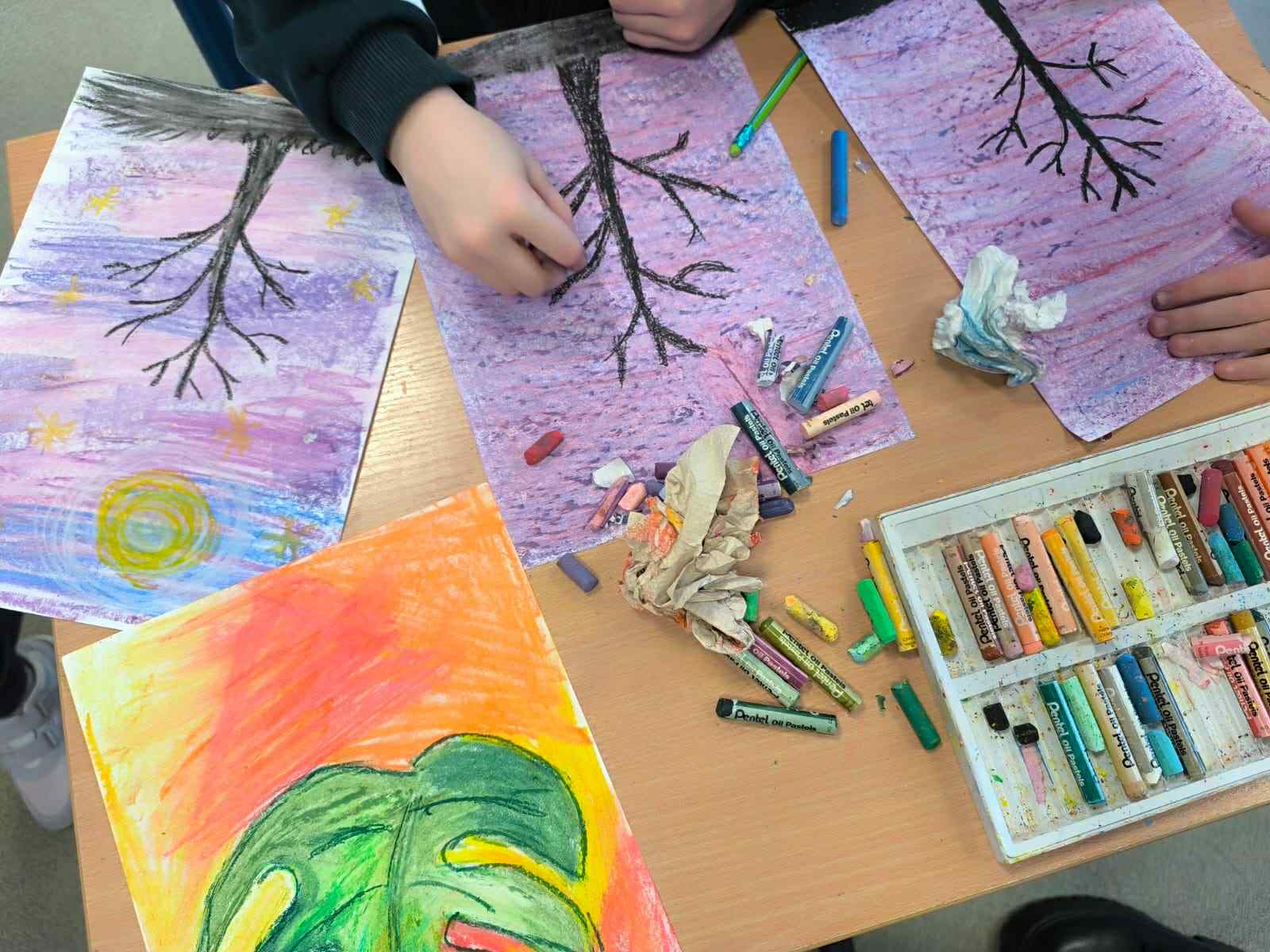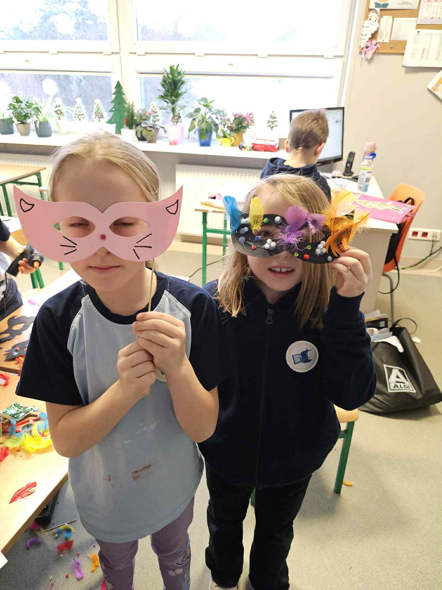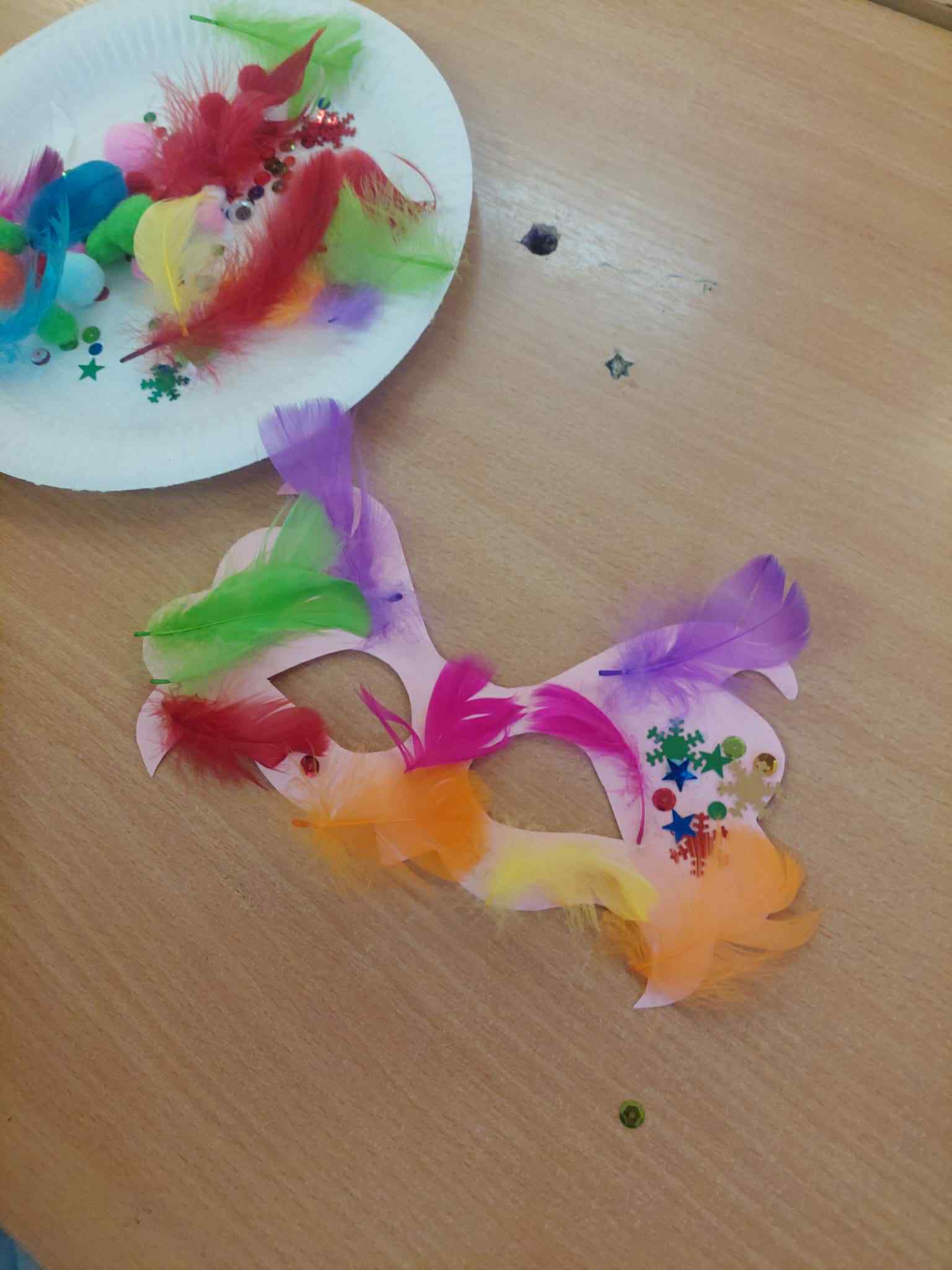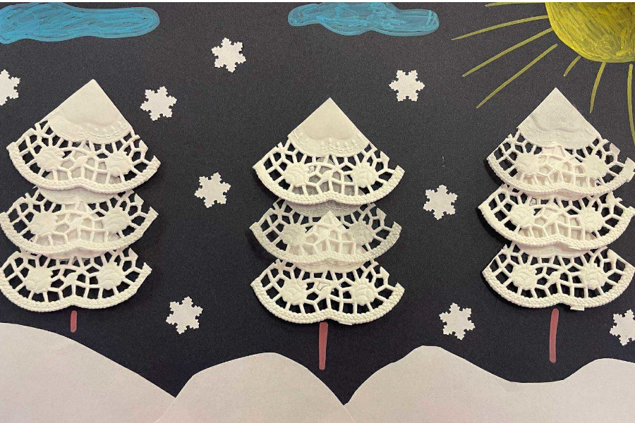 Nasi uczniowie w salach tworzyli prace plastyczne (maski karnawałowe, bałwanki z talerzyków, plakaty pingwinków...), bardzo chętnie tańczyli przy muzyce, ale także wyciszali się słuchając muzyki relaksacyjnej.
