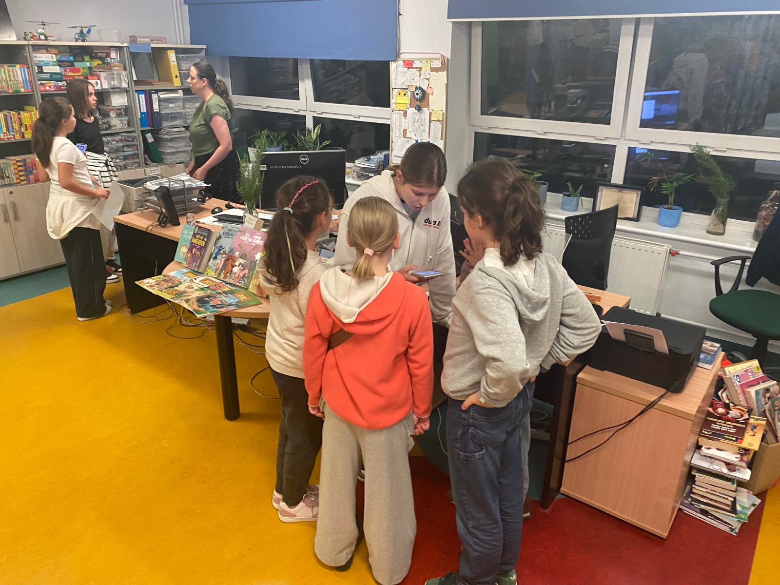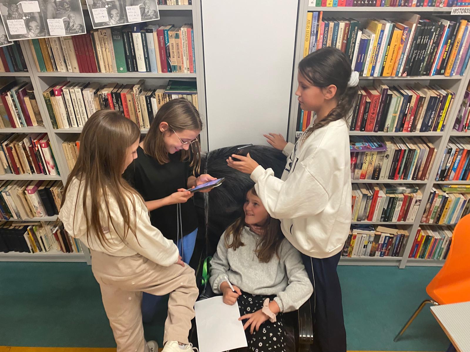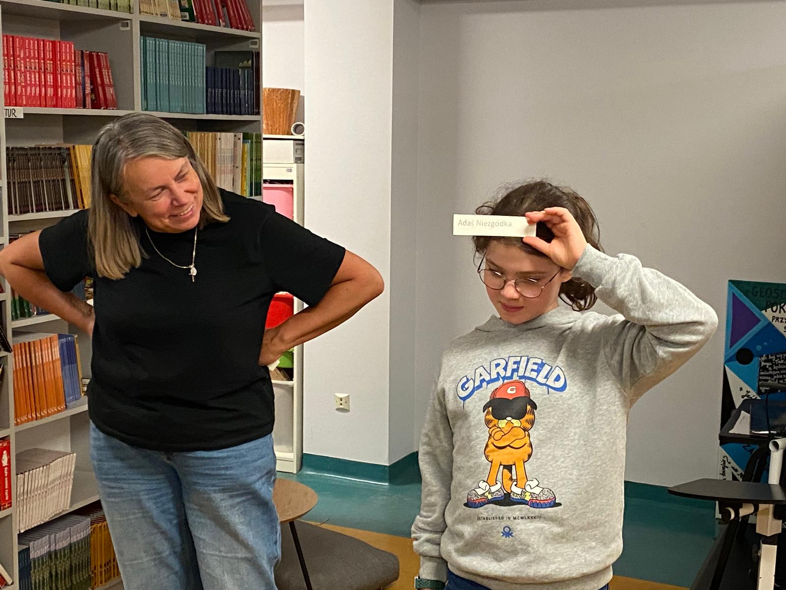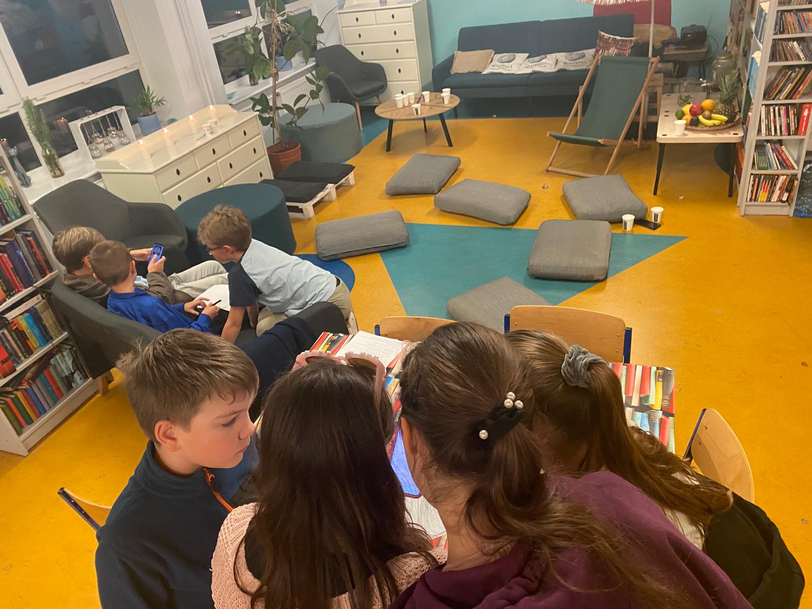 Spotkanie rozpoczęła „książkowa wizytówka” – każde dziecko przedstawiło się, używając tytułu swojej ulubionej książki. Pomysł wywołał wiele uśmiechów i od razu wprowadził wszystkich w literacki nastrój. Na dobry początek czekały również słodkie krówki, które dodały energii przed kolejnymi zadaniami.