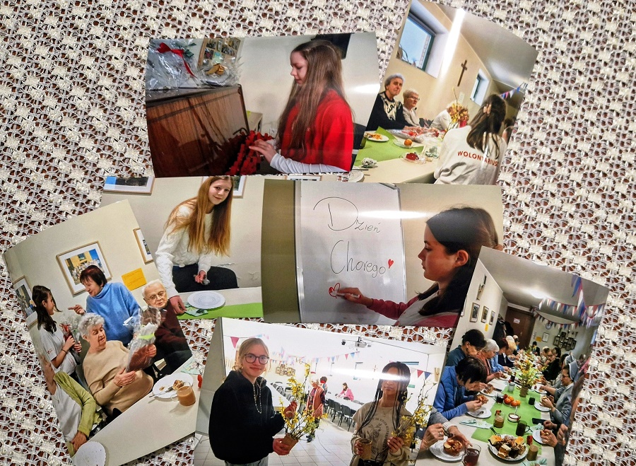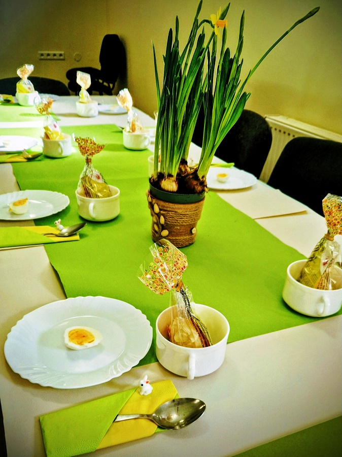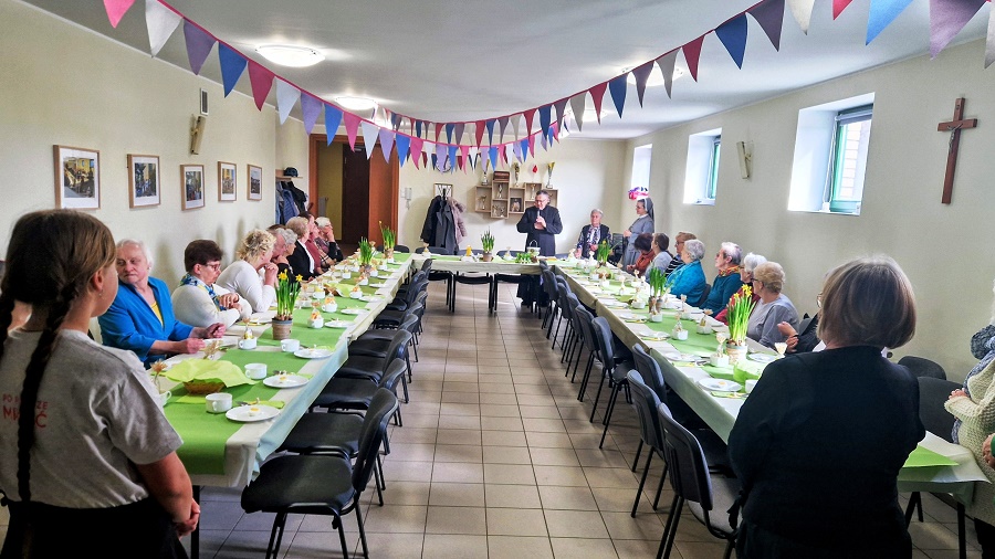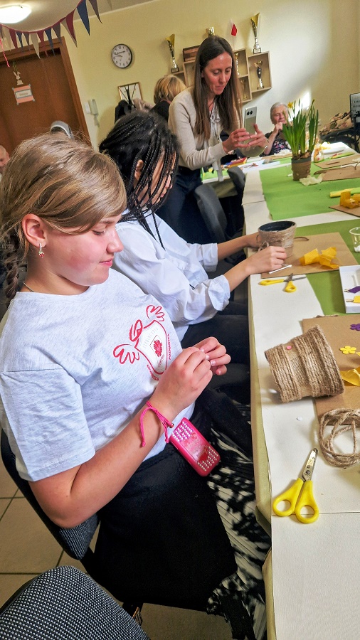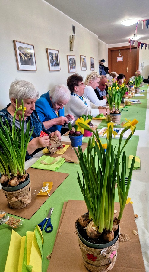 * w marcu - przedświąteczne spotkanie ze starszymi parafianami w ramach projektu "Senior i junior razem", połączone z ozdabianiem doniczek  [dla wiosennych kwiatów],