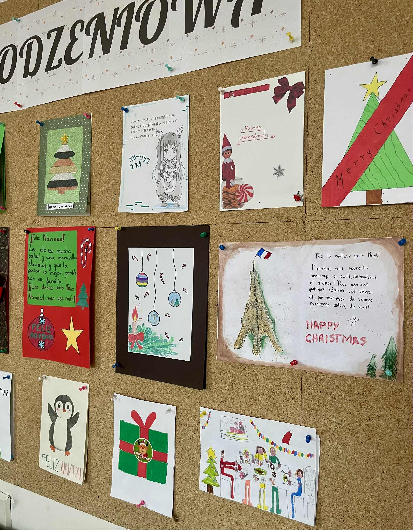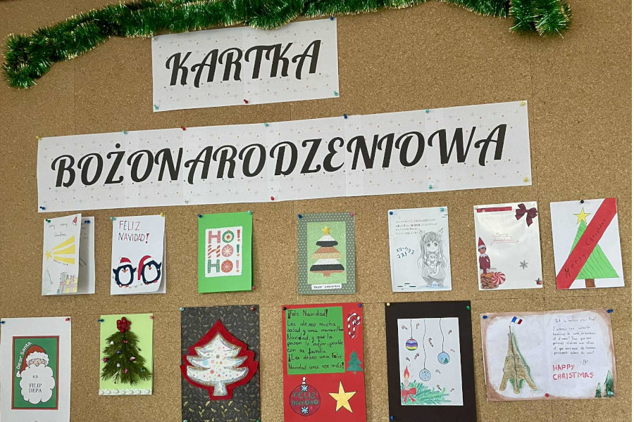 🌠🎄15 grudnia rozstrzygnięto szkolny konkurs „Kartka Bożonarodzeniowa” polegający na wykonaniu świątecznej kartki z życzeniami w języku obcym. Wyłoniono trzech zwycięzców oraz przyznano dwa wyróżnienia. Wszystkie zgłoszone prace zachwyciły pomysłowością, starannością wykonania oraz wyjątkowym, świątecznym klimatem, a życzenia wypisane były, między innymi, po angielsku, francusku, hiszpańsku, a także po łacinie!📝