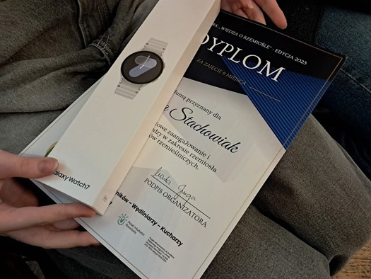 Z ogromną radością informujemy, że uczennica naszej szkoły Amelia Stachowiak zajęła 6 miejsce i została finalistką Ogólnopolskiego konkursu „Wiedza o Rzemiośle” 2025, którego organizatorem był Ogólnopolski Cech Rzeźników-Wędliniarzy-Kucharzy.