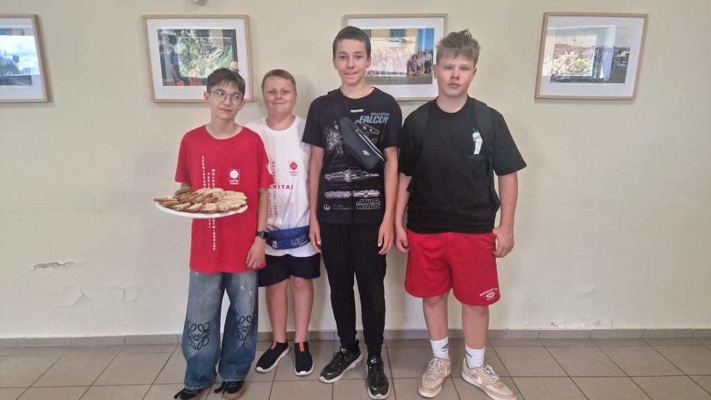 W pomoc włączyło się siedmioro wolontariuszy z naszej szkoły: trzy dziewczyny i czterech chłopców, wszyscy z klas siódmych.